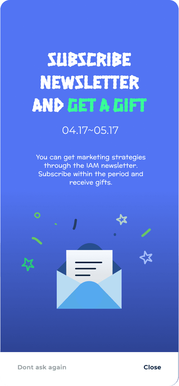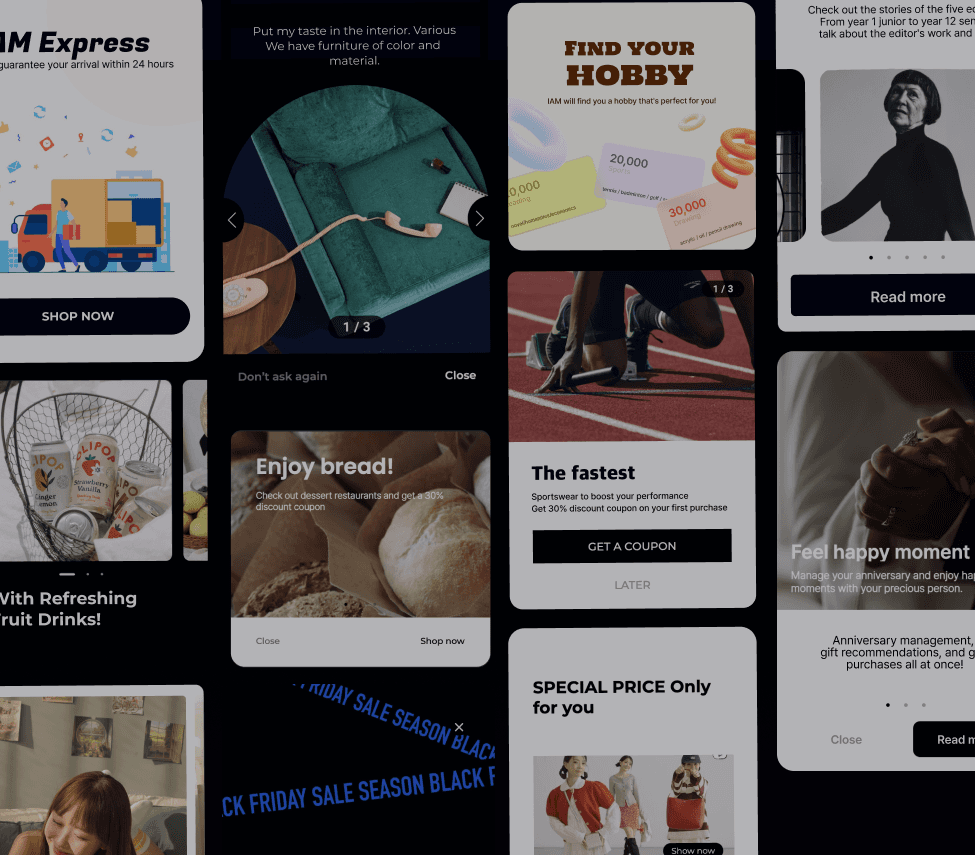 Through IAM Studio, we are exposing in-app messages optimized for campaign purposes such as sales promotions, secret coupons, and receiving consent.