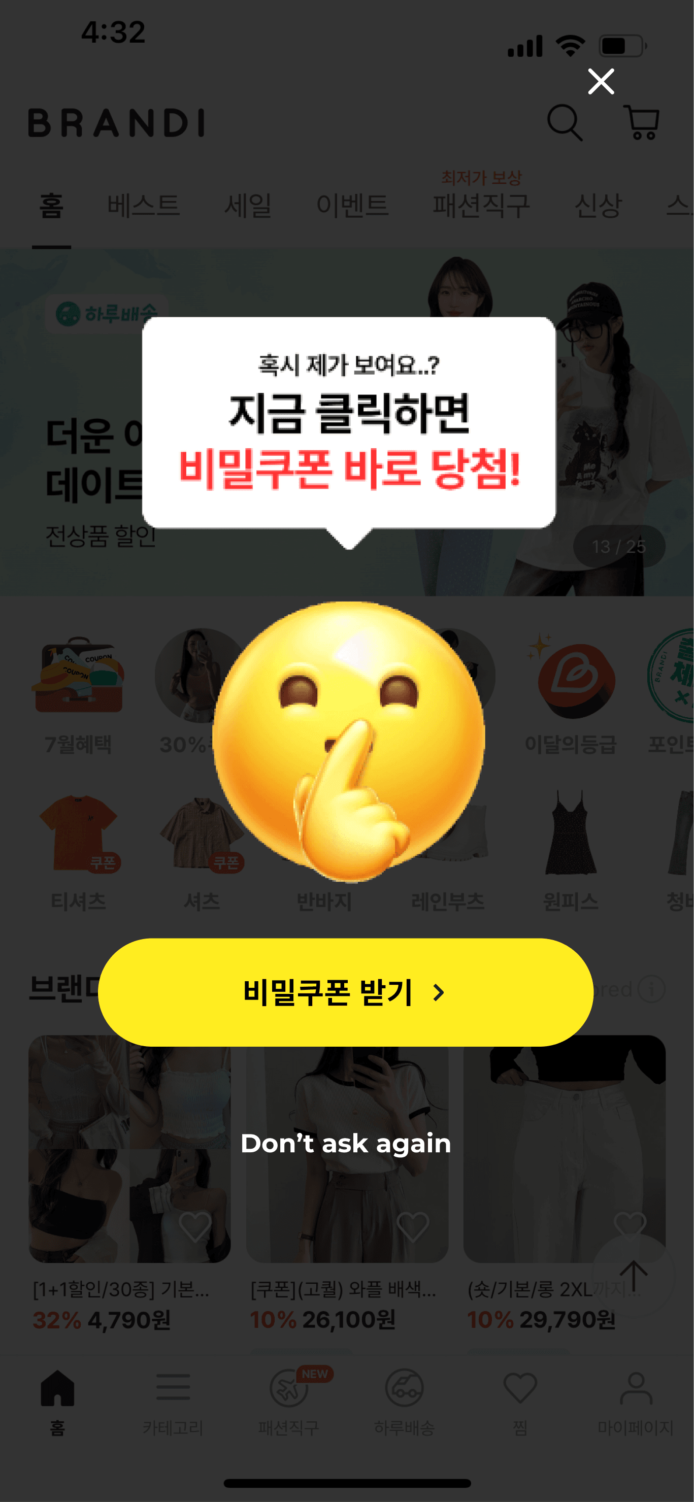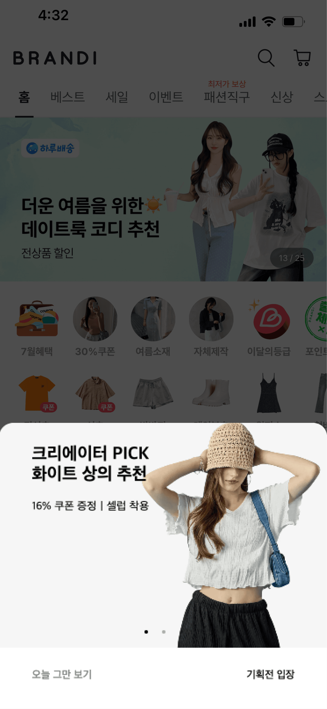 Through Iam studio, we are exposing in-app messages optimized for campaign purposes such as sales promotions, secret coupons, and receiving consent. Among them, as a result of sales promotions, CTR more than doubled and PV increased significantly.
